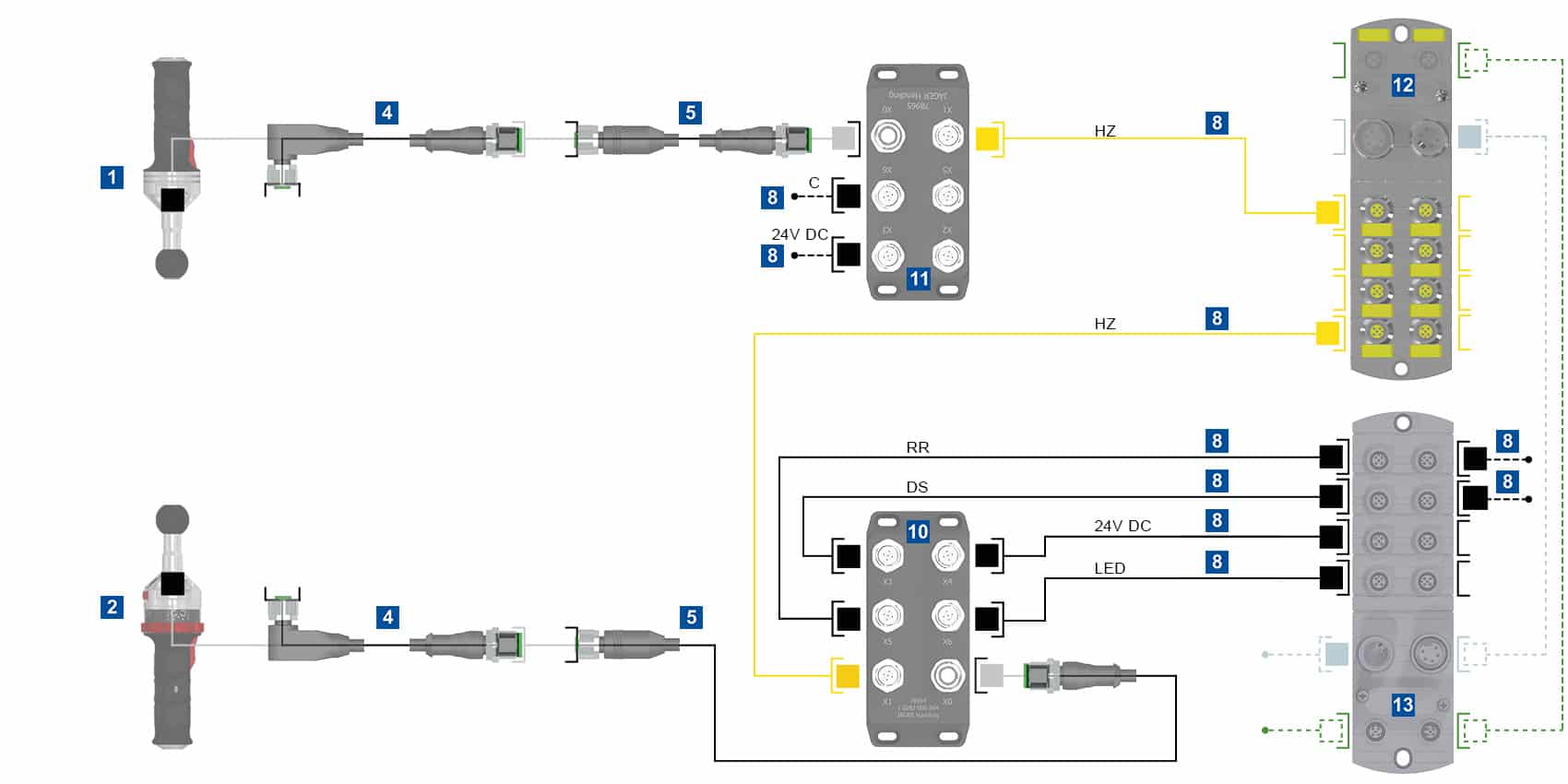Note: For moving cables, we recommend plugging the connecting cables before and after each change of direction. The total cable length of 70 m should not be exceeded.