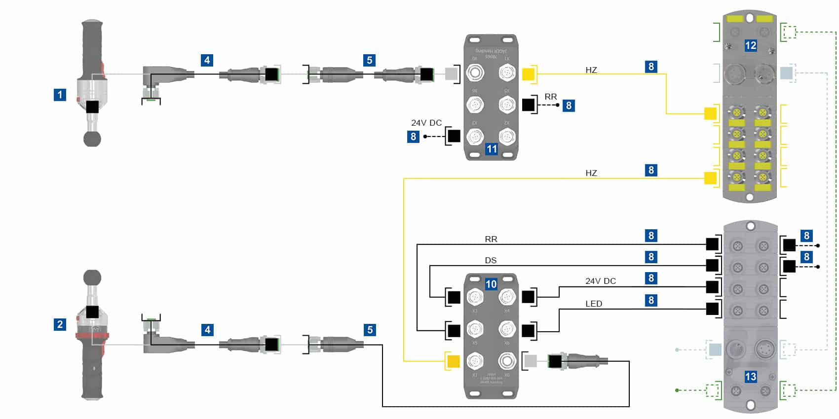 Note: For moving cables, we recommend plugging the connecting cables before and after each change of direction. The total cable length of 70 m should not be exceeded.