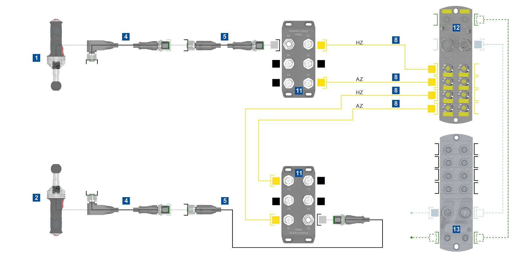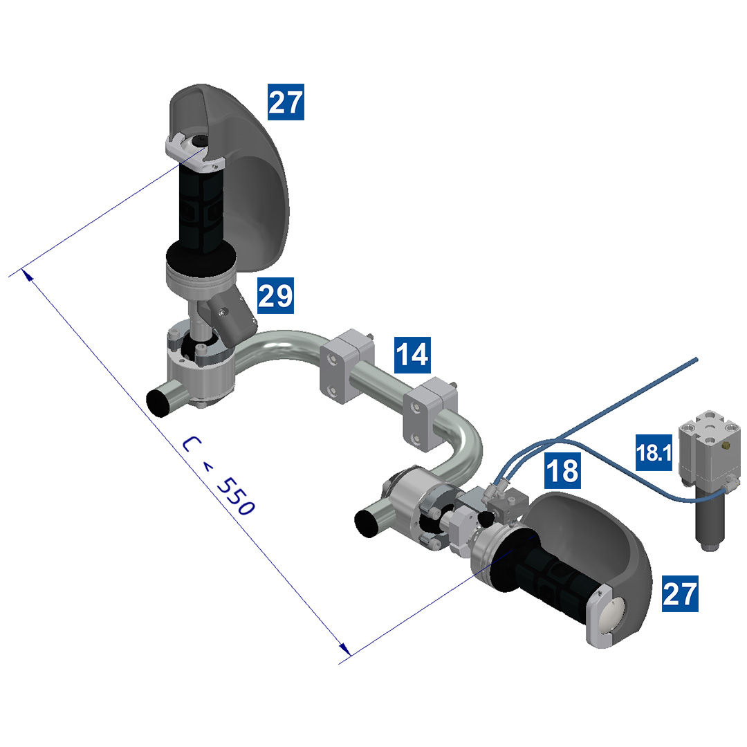 Bitte beachten Sie, dass bei einer sicheren Zweihandbetätigung ein Mindestabstand von C = 550mm zwischen den Tastern einzuhalten ist. Sollte dieses Maß unterschritten werden, ist je Handgriff ein Protektor erforderlich, um das gleichzeitige Betätigen beider Taster mit Hand und Ellenbogen desselben Arms zu verhindern. Wie wird das Maß C berechnet?