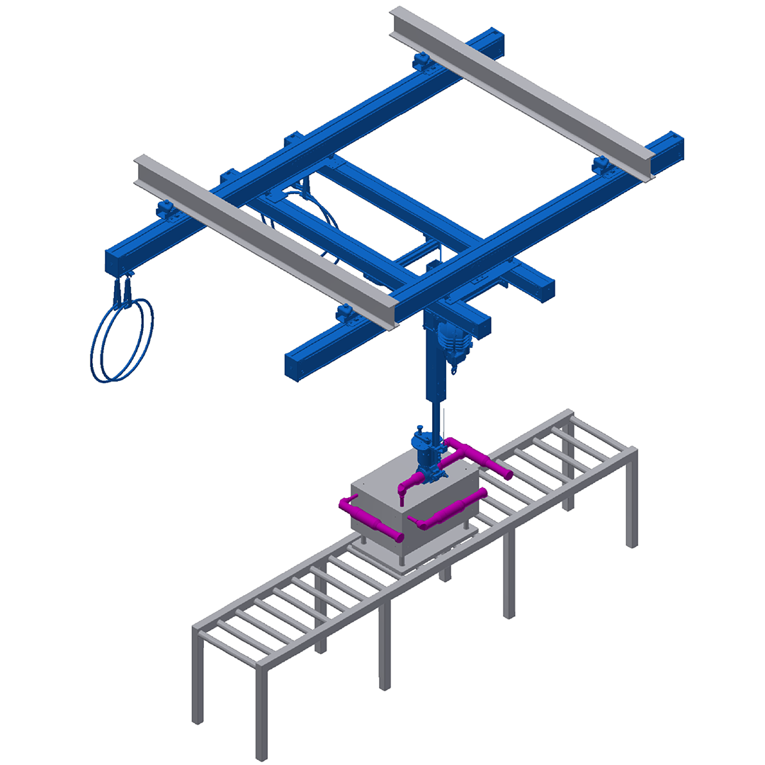 Der handy-lift Baukasten wird in Kombination mit dem eepos-Schienensystem in Einzelarbeitsplätzen sowie in verketteten Takt- und Fließmontagen mit automatischem Werkstücktransfer eingesetzt und bietet Systeme für Traglasten bis 500 kg und Drehmomente bis 1500 Nm. Teilautomatisierte Ausführungen beim ein- oder mehrspindligen Verschrauben steigern die Produktivität durch die Eliminierung nicht wertschöpfender Tätigkeiten und senken die Kosten spürbar.