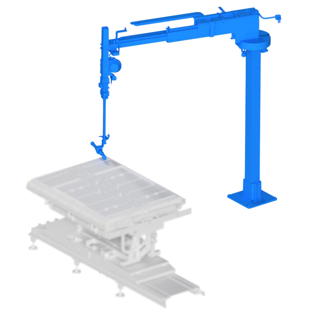 Das handy-smove gibt es sowohl als aufgeständerter Variante als auch deckenabgehängt. Das Schrauberhandling mit Auslegerarm ist für sehr hohe Lasten ausgelegt. Es zeichnet sich außerdem durch seinen großen Arbeitsbereich von bis zu 3.000 mm aus.