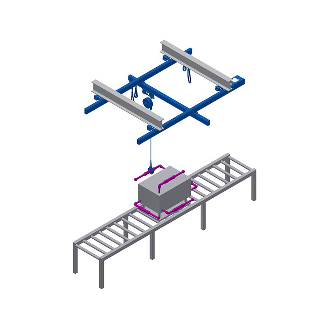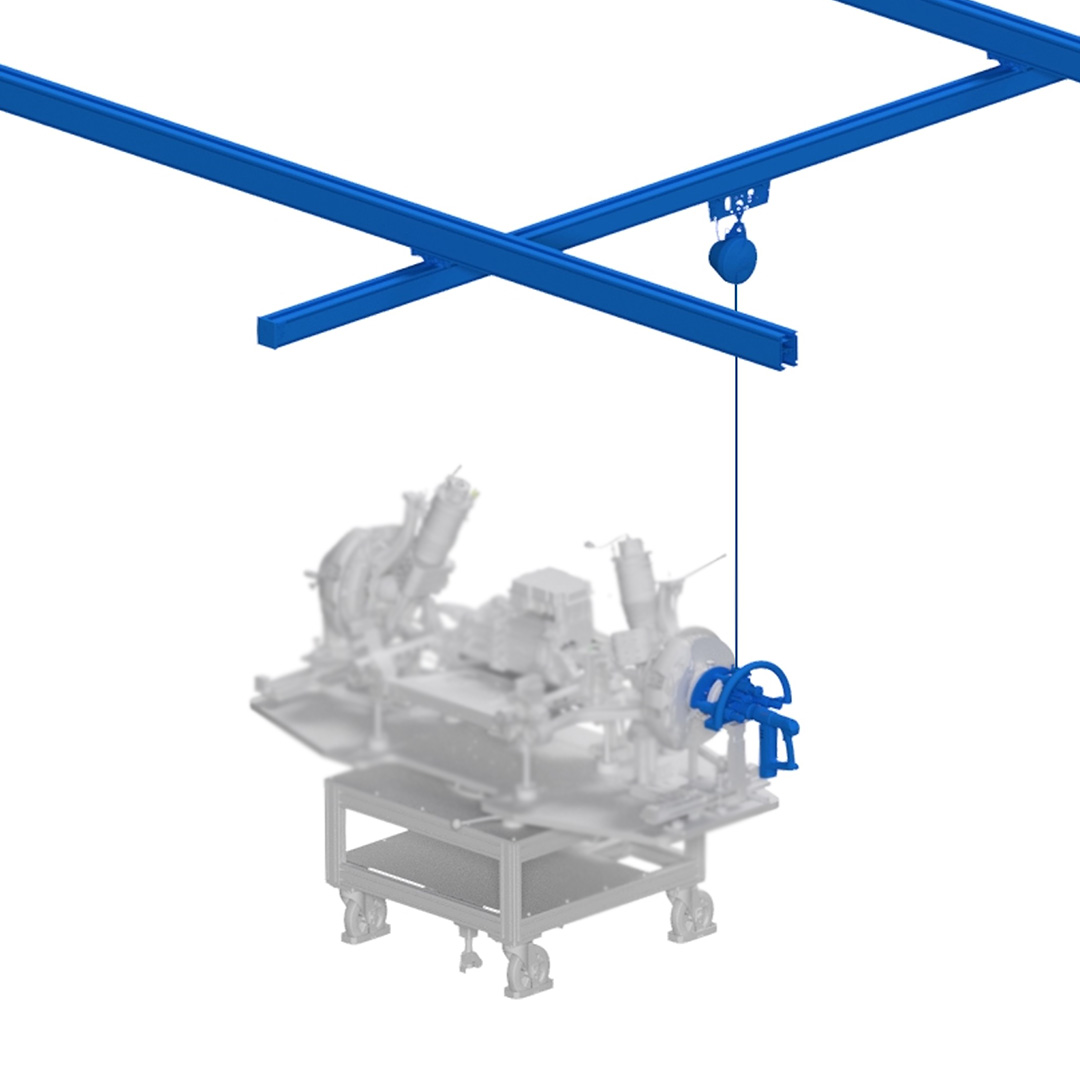 Die roller-unit ist ein deckenabgehängtes, handgehaltenes Schrauberhandling, das meist aus Fahrwagen mit Balancer für Handschrauber, Scanner oder Ähnliches besteht. Mit Drehmomenten bis 25 Nm ist die roller-unit nur für Anwedungsfälle mit geringem Drehmoment geeignet, da es vom Werker abgefangen werden muss.