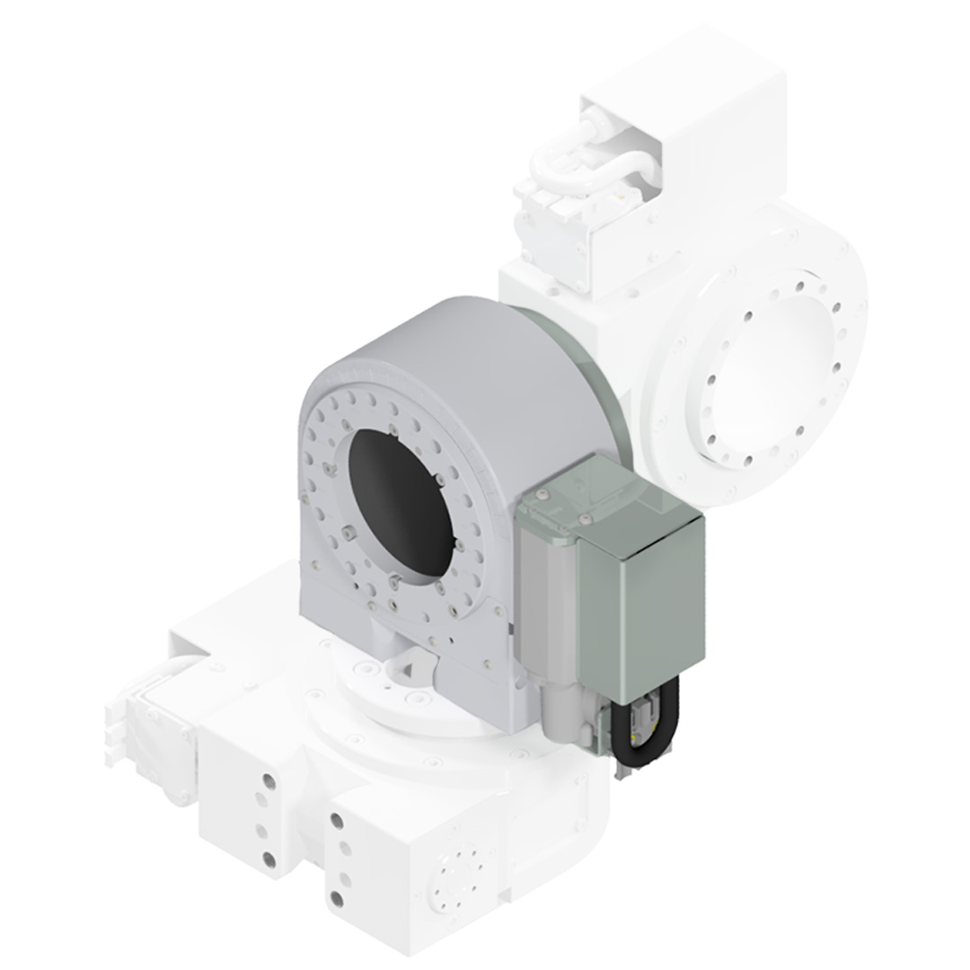 Fully electric rotary drive for positioning tasks in handling technology, preferably for swiveling hand screwdrivers or screw spindles by a defined angle. The rotary drive has a gear ratio of i=1150 and a maximum counter torque of 400 Nm can be applied. The motor is mounted on the left / right side of the rotary drive. The connection module can be used to mechanically connect two part-turn actuators. 15-pin connection cable with straight connector (M16) and open cable end with a length of 0.5 m - 10 m for the rotary drive.