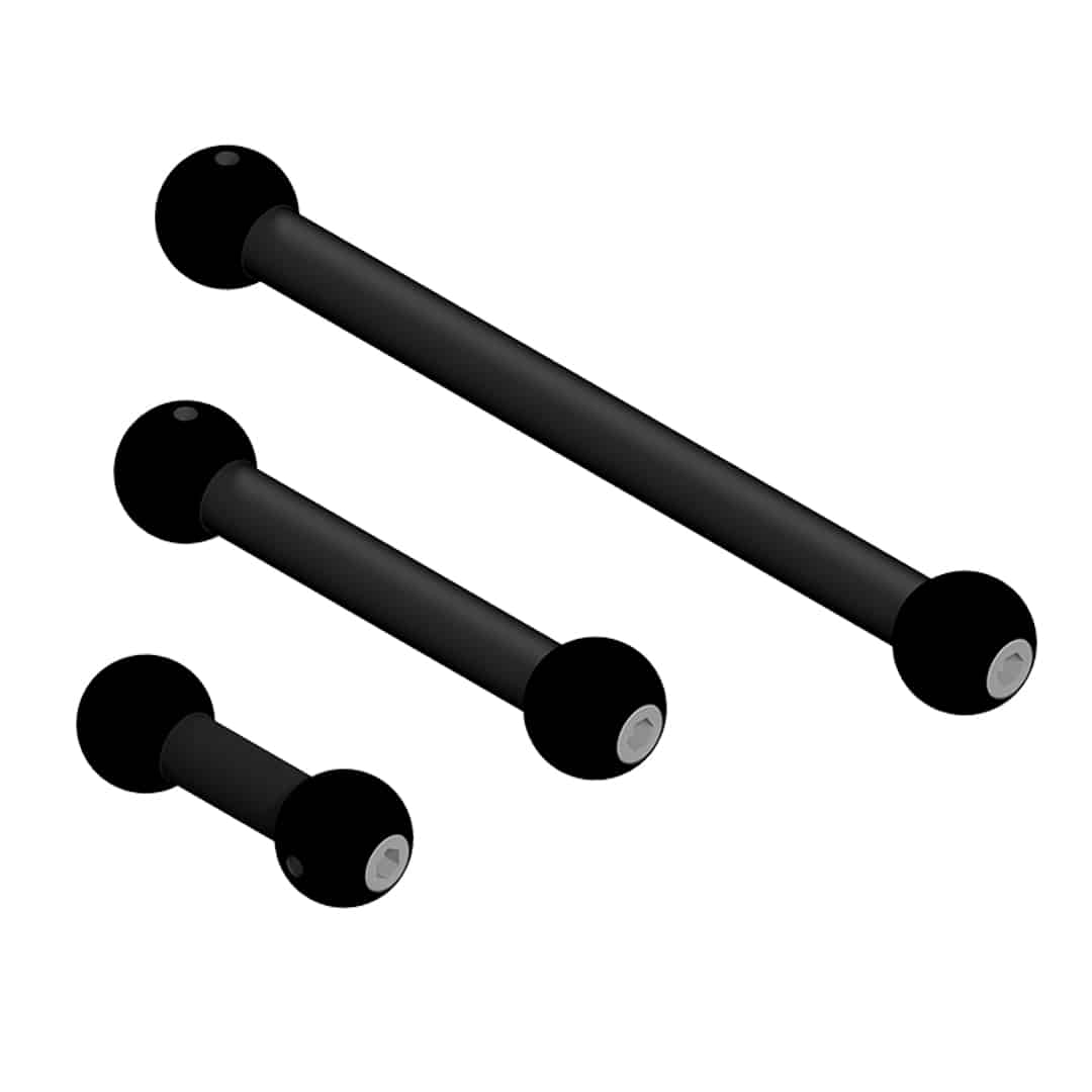 Die Knochen dienen als Distanzstück für die Anbindung der Bedienhandgriffe. Dank ihrer beidseitigen Kugelanbindungen mit Ø35mm können sie an zwei Klemmstücke befestigt werden und ermöglicht so zweifache Anpassungen in einem Raumwinkel von +/- 20°.