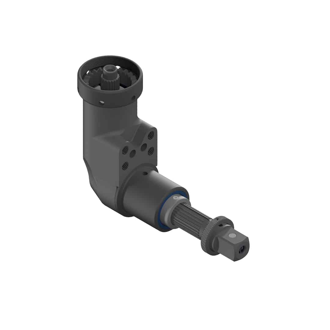Der Winkelkopf ist für die Verwendung mit der Schraubspindel Baugröße 4 / dem Handschrauber ErgoSpin ESV146-G von Bosch Rexroth bestimmt. Durch eine Übersetzung von i=1,67 - 3 ergibt sich ein Drehmomentsarbeitsbereich von 46 bis 430 Nm, in dem der Winkelkopf eingesetzt werden kann. Der Winkelkopf ist an der Abtriebswelle mit einem Axialausgleich mit einem Hub von 40mm ausgestattet (H40). Am Abtrieb befindet sich für die Befestigung eines Steckschlüssels ein 4kt-3/4", der über das integrierte Schnellwechselfutter mit einer manuellen Betätigung an der Abtriebswelle schnell und werkzeuglos wechseln lässt.