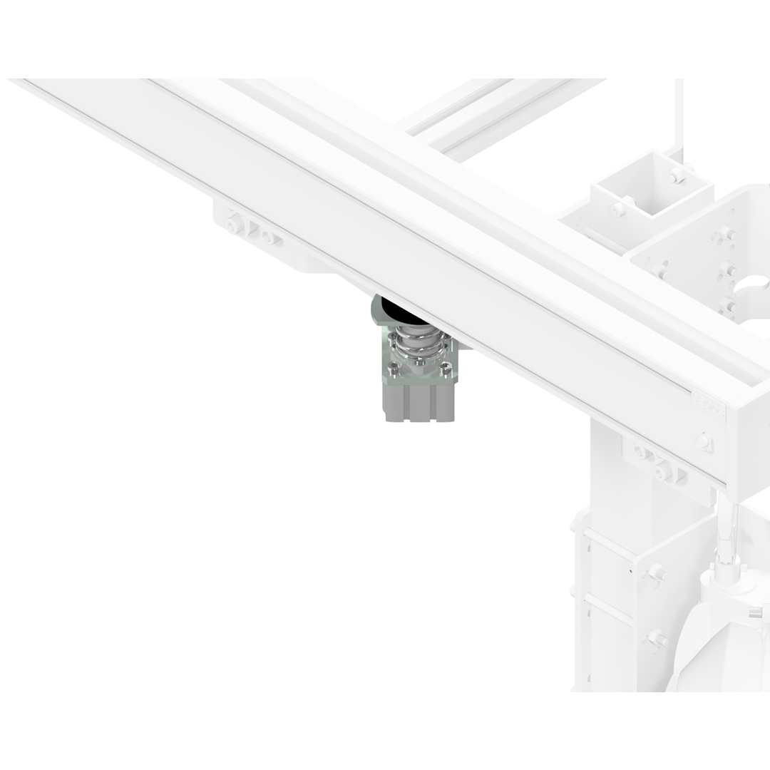 ANr.: 42013: Pneumatische Bremse zur Befestigung an Ein- oder Zweispur Kranbrücke. Die Kranbrücke wird mittels Federdruck an der Kranbahn an einer beliebigen Position fixiert. Zum Lösen wird ein Pneumatikzylinder mit mind. 4 Bar Druck beaufschlagt. ANr.: 56708: Pneumatische Bremse zur Befestigung an Ein- oder Zweispur Kranbrücke. Die Kranbrücke wird pneumatisch an der Kranbahn an einer beliebigen Position fixiert.