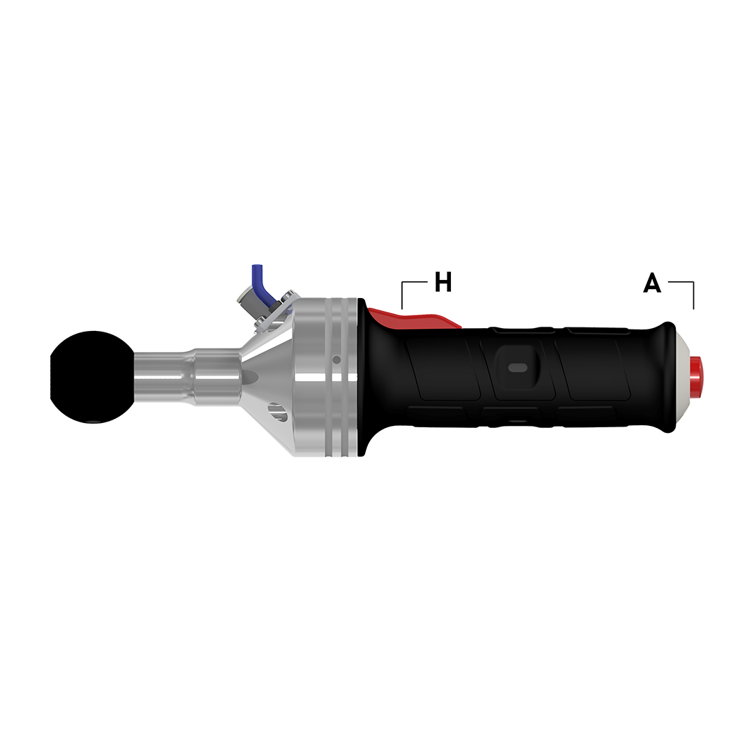 Basisaustattung: Steckfix für Zuluftschlauch Innen-Ø 6mm und Tülle für Abluftschlauch Innen-Ø 2,5mm. Durch die Kugelanbindung kann der p-handle stufenlos um ± 20° im Raum befestigt werden. Variantenaustattung: Dieser p-handle (PH) ist mit einem Hebeltaster (H) und einem Axialtaster (A) ausgestattet.