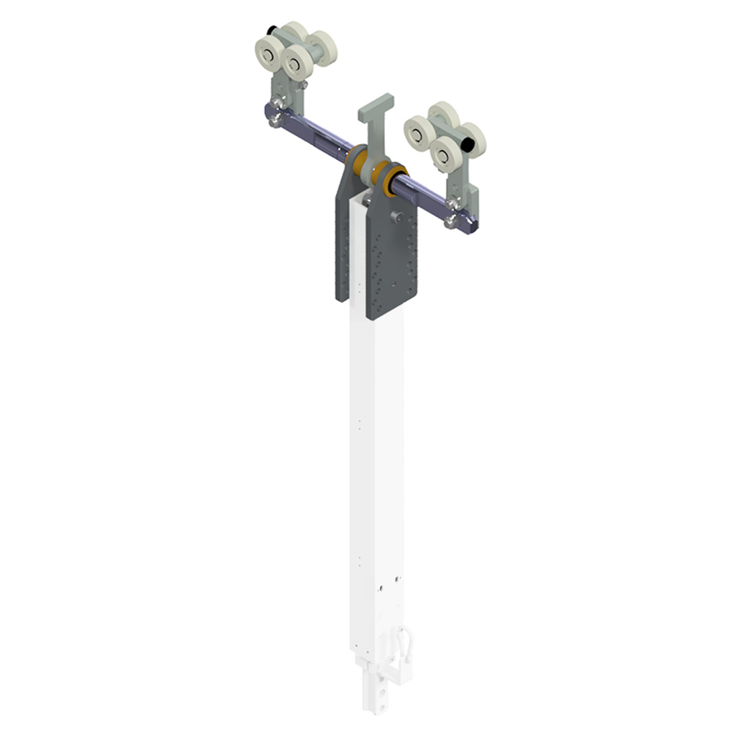 Funktion Das Fahrwerk Einspur dient als Führungskomponente für ein handy-lift-System in einer eepos-Laufschiene one. Es ermöglicht die Bewegung des Systems entlang der Schiene und unterstützt eine Pendelbewegung quer zur Fahrtrichtung. Eigenschaften Klemmung des Fahrwerks mittels zwei Platten am handy-lift Zwei Laufrollen mit jeweils einer Gegendruckrolle Anschlagpuffer als Endanschlag integriert Aufnahme für handy-lift-Systeme der Serie 100, 200, 300 und 500 Verwendung Das Fahrwerk wird in Kombination mit einer eepos-Laufschiene one eingesetzt, um handy-lift-Systeme der Serie 100–500 flexibel zu bewegen. Es eignet sich für Anwendungen, bei denen eine pendelnde Bewegung ausreicht, um die Schraubstelle zu erreichen – beispielsweise in Montage- oder Handlingprozessen.