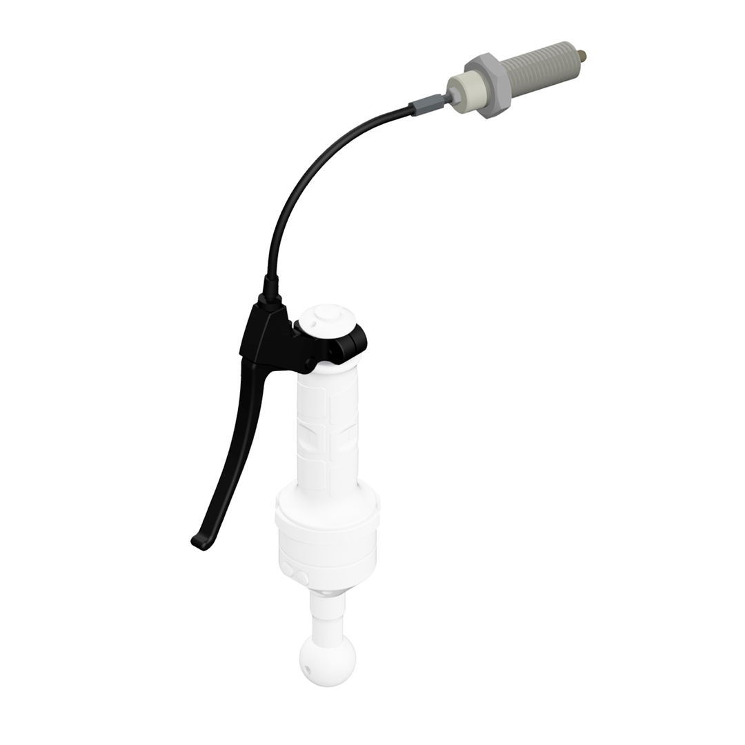 Die Fernbetätigung Verriegelung vertikal mit Klemmhülse M24 / d25mm und Absteckbolzen Ø8mm / 16mm kann zur Indexierung von wiederholbaren Positionen eingesetzt werden, sowohl für lineare als auch rotatorische Bewegungen. Der Absteckbolzen ist in seiner ausgefahrenen Stellung federbelastet und wird durch Betätigung des Handhebels bowdenzugbetätigt eingefahren.