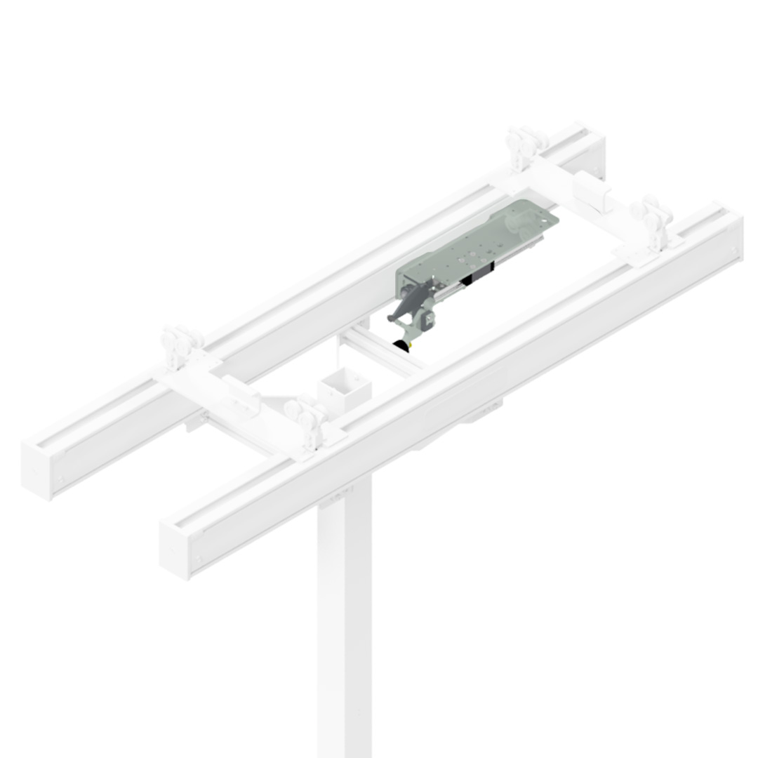 Pneumatischer Vorschub für Kranbrücke oder Fahrwerk eepos. Befestigung an Kranbrücke oder Kranbahn. Ermöglicht das Zuschalten einer pneumatisch aufgebrachten Vorschubkraft über Schwenkhebel. Das Aufschalten erfolgt nach Betätigung Prozessstart, das Umschalten erfolgt nach Freigabesignal. Hub Vorschubzylinder 200mm, Andrückkraft 700N bei 4 Bar.