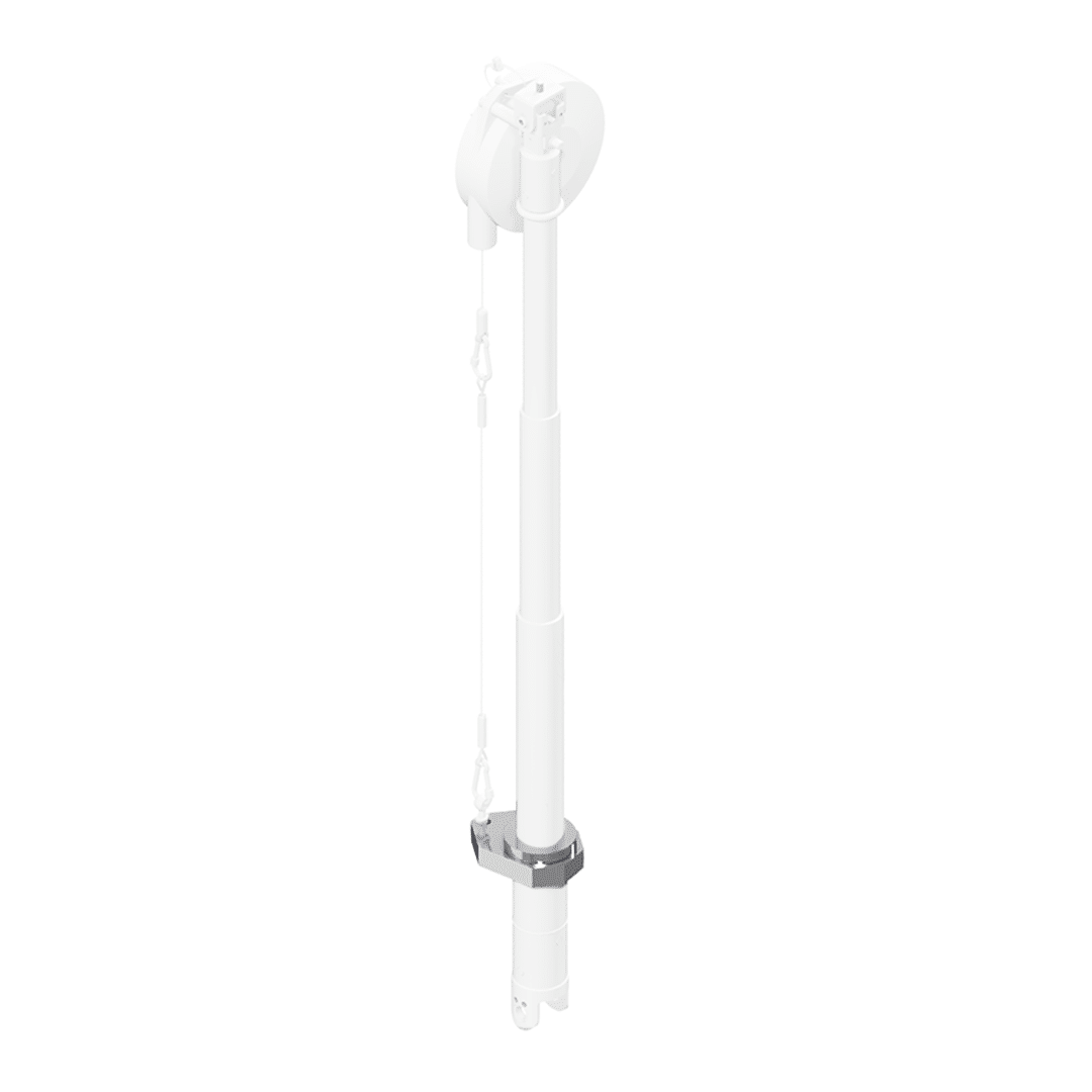 Die drehbare Federzugeinhängung für den carbo-arm dient zur Vermeidung von Verdrillungen des Federzugseils um die Auszugsachse des carbo-arms. Durch die integrierte Drehlagerung wird eine freie Rotation ermöglicht, sodass das Seil stets ohne Verdriehung geführt wird.
