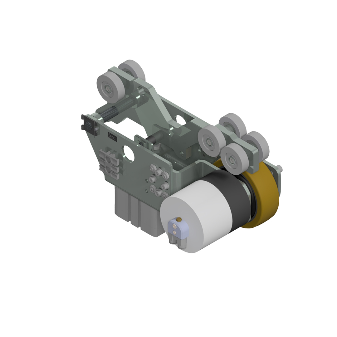 Der Reibradantrieb 600REP25 ist ein besonders für die Erfordernisse der Handhabungstechnik entwickelter Fahrantrieb für stufenlose Verfahrgeschwindigkeiten. Das Reibrad überträgt dabei die Leistung des elektrischen Motors in effizienter Weise auf die Unterseite des Kranprofils. Der Reibradantrieb 600REP25 ist einsetzbar für die Kranprofile KBK Aluline A18/A22. Im deaktivierten Zustand ist der Reibradantrieb komplett von der Kranbahn abgekuppelt und verursacht dadurch keine zusätzlichen Fahrwiderstände. Im aktivierten Zustand erzeugt ein pneumatischer Kurzhubzylinder den erforderlichen Andruck des Reibrads. Der Andruck des Reibrads, sowie der Antrieb des Reibrads kann entsprechend den Anforderungen jeweils separat elektrisch bzw. pneumatisch aktiviert werden.