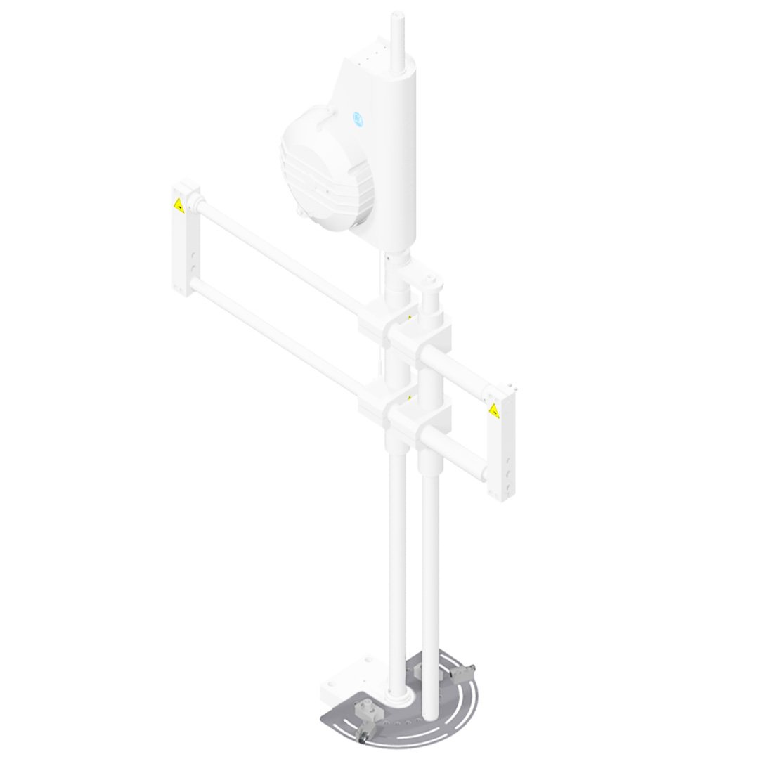 Das Anbaukit dient zur Aufnahme von induktiven Sensoren die in Verbindung mit der Schwenkbegrenzung die Position der Drehachse erfassen Es wird an der Fußplatte des handy-flex montiert und unterstützt die Umsetzung einer Null-Fehler-Strategie zur Vermeidung von Montagefehlern