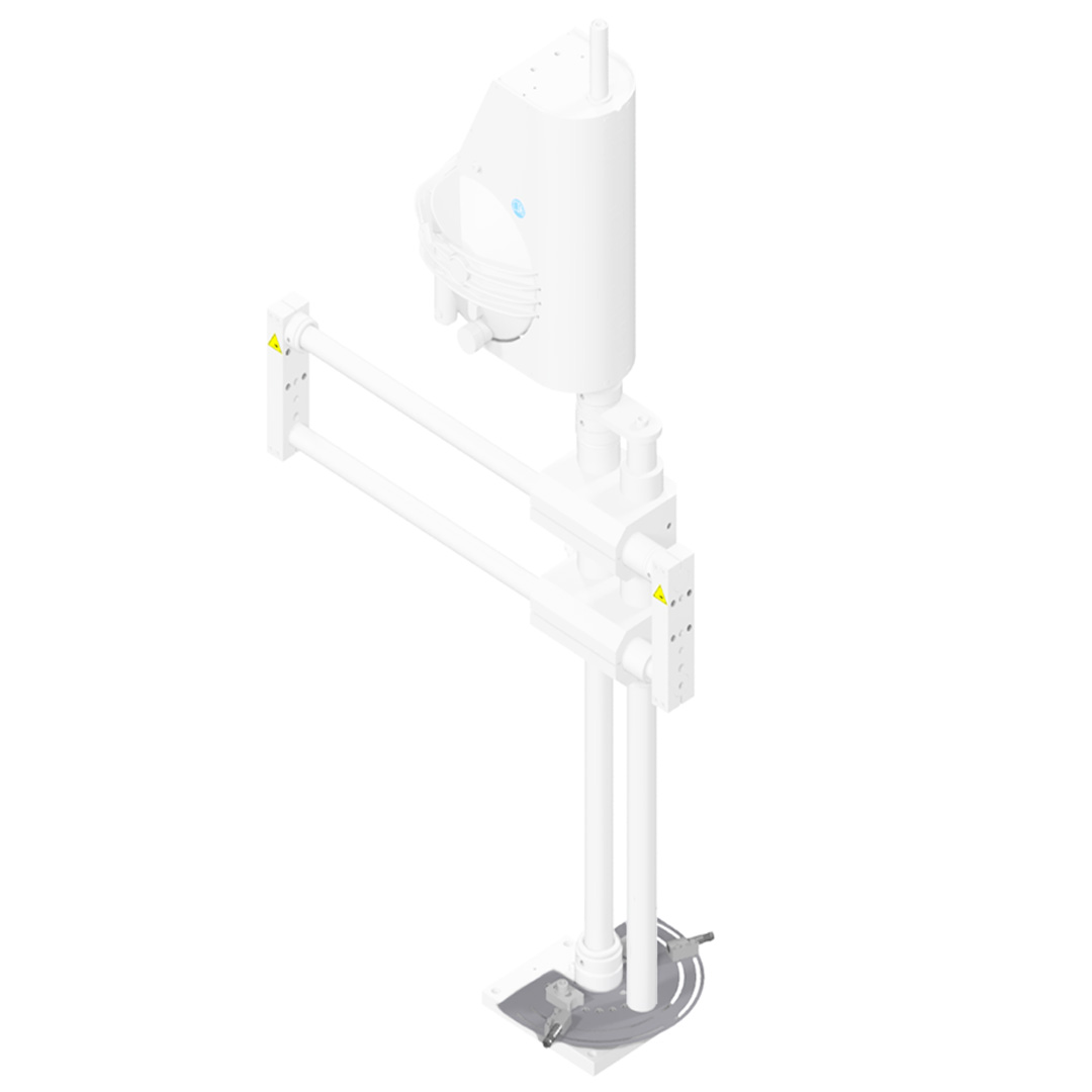 Das Anbaukit dient zur Aufnahme von induktiven Sensoren die in Verbindung mit der Schwenkbegrenzung die Position der Drehachse erfassen Es wird an der Fußplatte des handy-flex montiert und unterstützt die Umsetzung einer Null-Fehler-Strategie zur Vermeidung von Montagefehlern