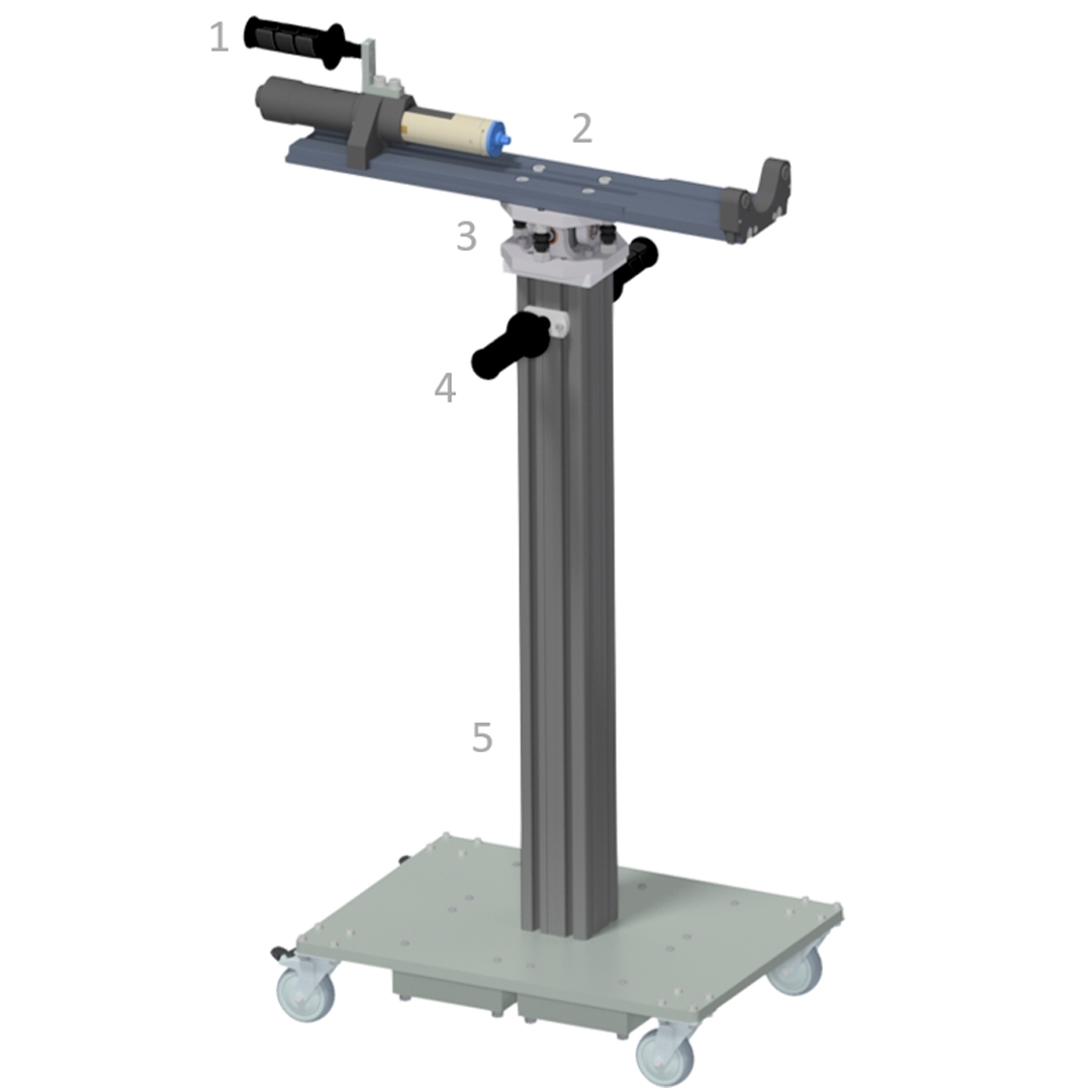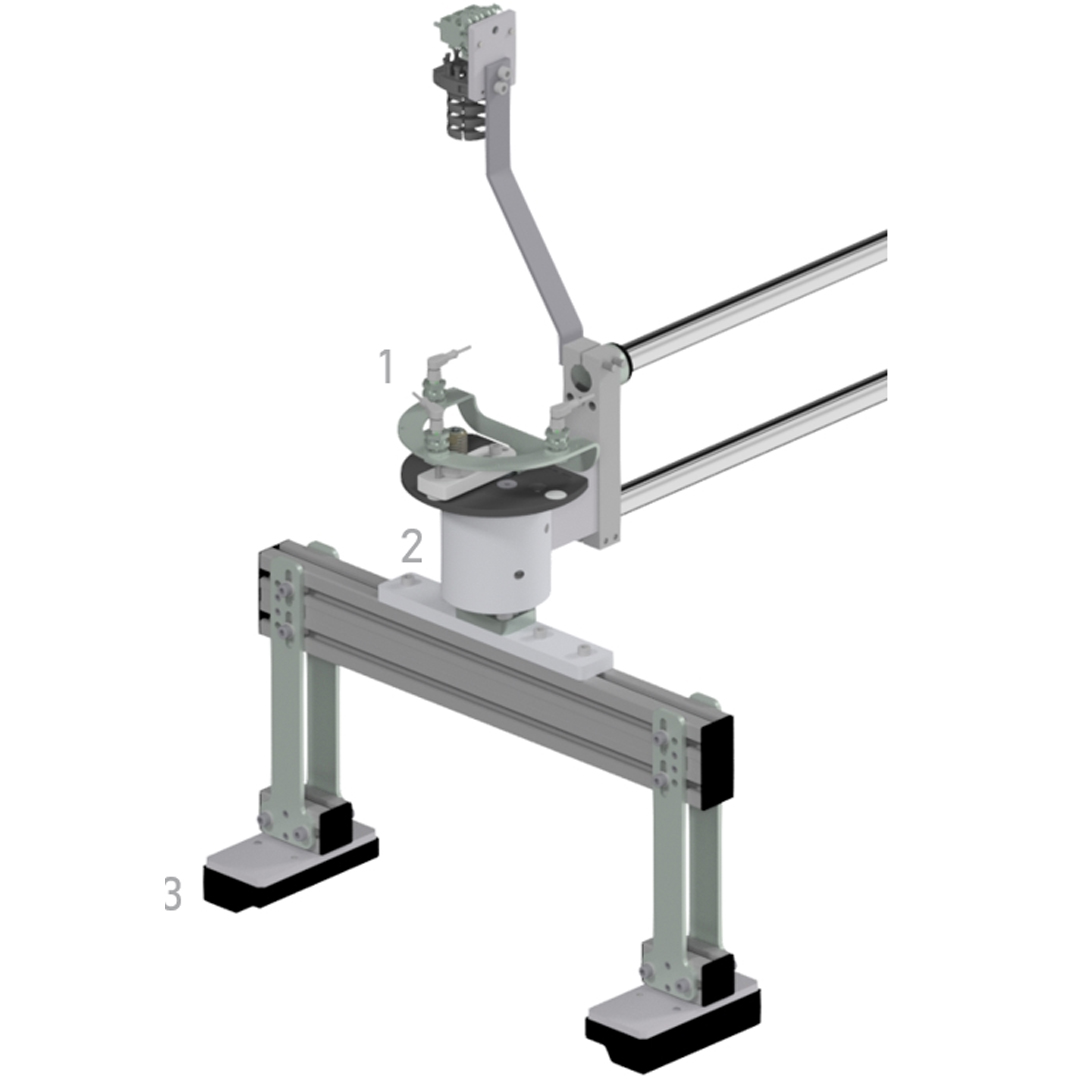 Bolting the support frame to the E-motor. During bolting, the support frame must be fixed to the E-motor by a hold-down device. Initially, bolting is performed with two spindles, followed by two additional bolting operations each with a single spindle. Between the individual bolting operations, the workpiece carrier, including the motor and support frame, must be rotated accordingly to reach the required positions. Additionally, a mobile solution for external reference measurement must be provided.