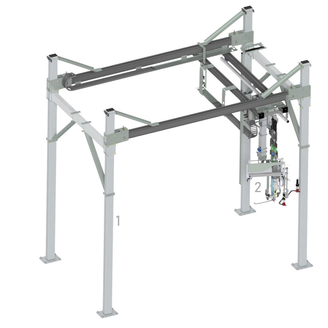 Verschrauben verschiedener HV-Verbinder mit den Batteriemodulen. Für die sichere Handhabung sind die Bauteile über einen Greifer aufzunehmen und nach erfolgter Spindelverstellung präzise an der Batterie auszurichten, um die Verschraubung durchführen zu können.