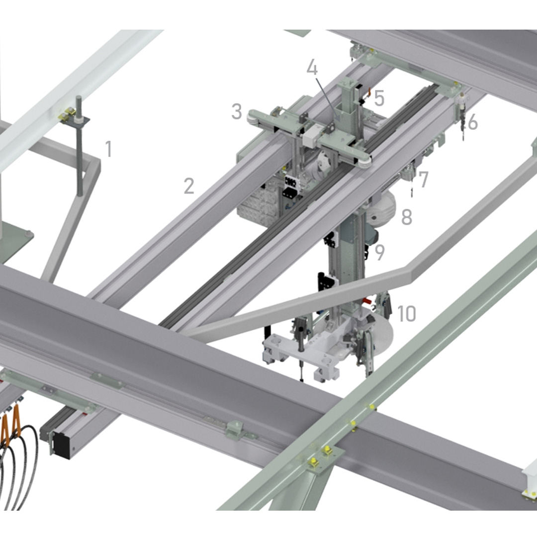 Der Werker führt das Handlingsgerät manuell an das in einer Tiefziehfolie befindliche Getriebe heran. Nach korrekter Positionierung des Bauteilgreifers wird das Getriebe über eine Zweihandbedienung gegriffen. Anschließend führt das Bauteilhandling den Hub automatisch aus, verfährt das Getriebe auf den Werkstückträger und setzt es dort ab. Nach dem Ablegen fährt das System selbstständig in die Ausgangsposition zurück. Der gesamte Ablauf ist rein pneumatisch auszuführen.