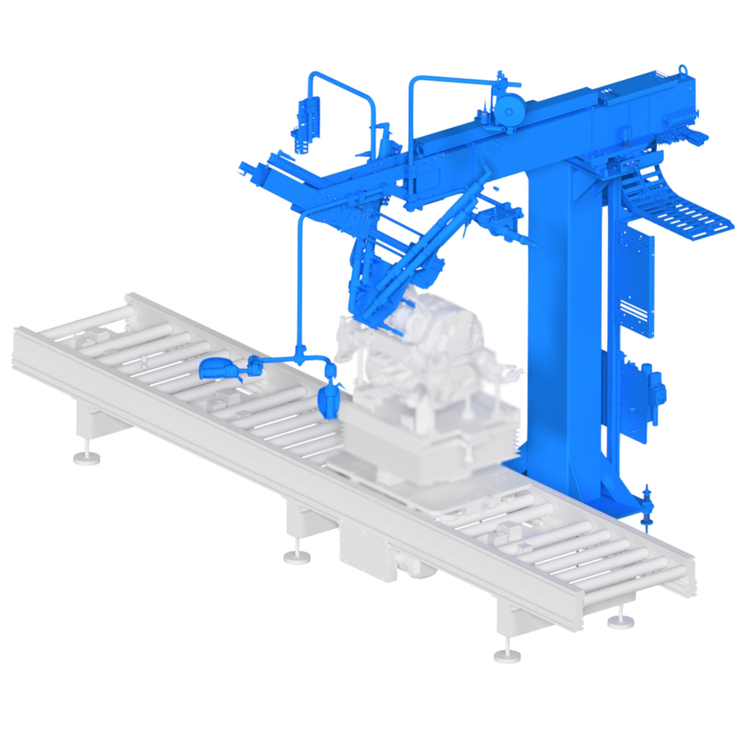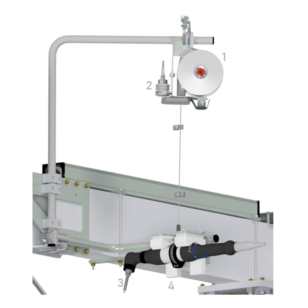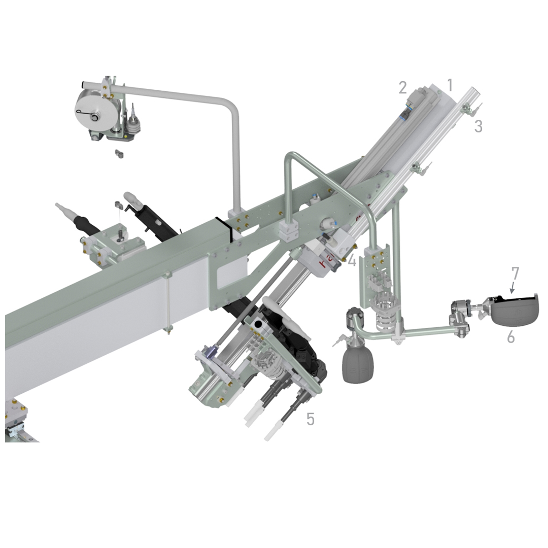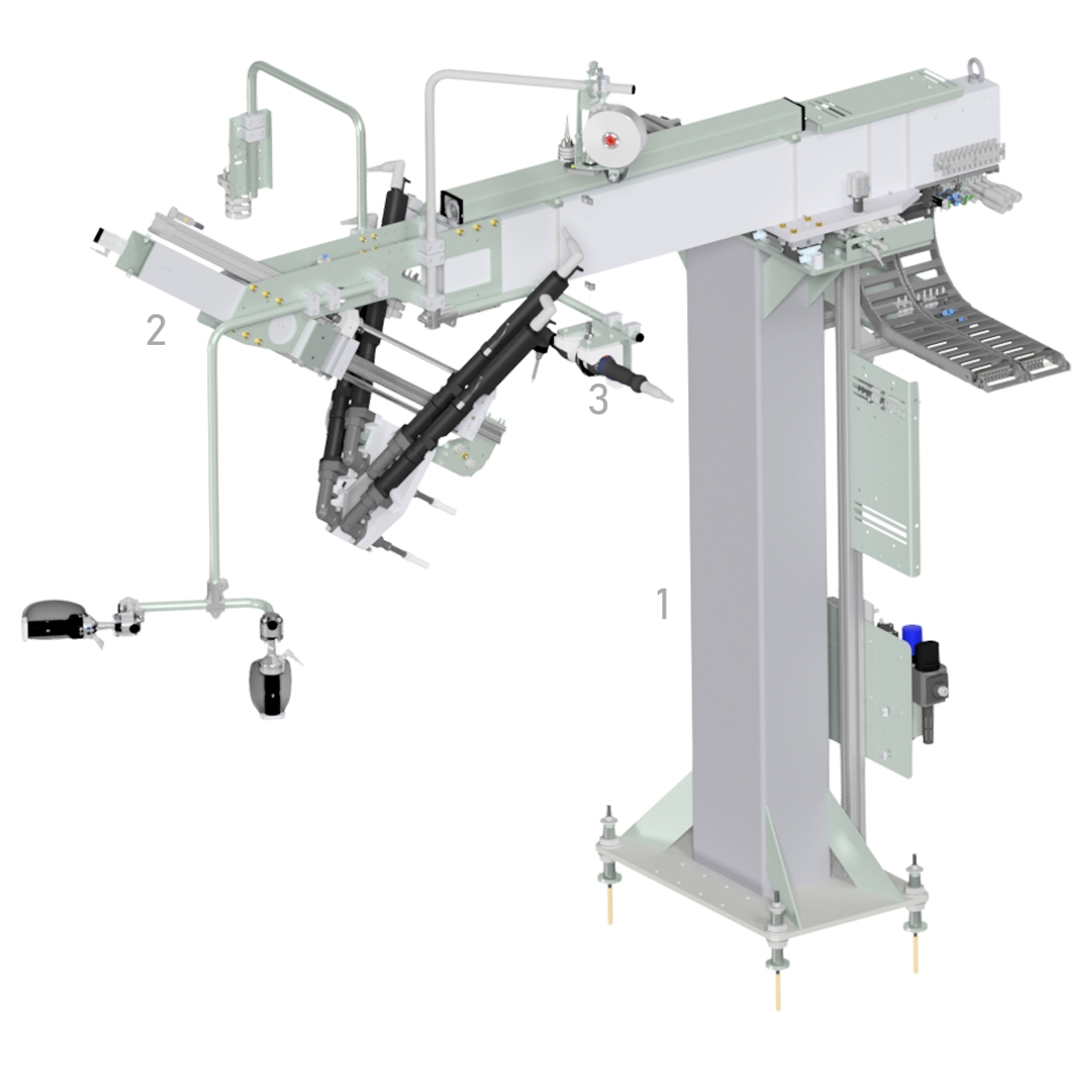 Vier Schrauben sind gleichzeitig zu verschrauben. Das Handlingsgerät wird manuell durch den Werker zur Schraubstelle geführt, der Schraubvorgang erfolgt anschließend halbautomatisch bis zur Rückkehr in die Parkstellung. Es steht weder ein Stahlbau noch ein Schienensystem zur Verfügung, eine freistehende Ausführung ist erforderlich. Die Verschraubung der Kühlleitung erfolgt manuell in derselben Station, ohne Aufnahme des Drehmoments.